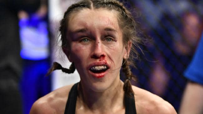 In March 2020, at UFC 248 then straweight champion Zhang (21-3-0) from China, had successfully defended her belt against Joanna Jedrzejczyk (16-4-0) (pronounced “Yohanna Yunjercheck) from Poland in what would be the final UFC pay per view before Covid-19 regulations would remove crowd audiences from witnessing fight cards in arenas for at least the next six months which would follow. The crowd at the T-Mobile Arena in Las Vegas had been treated to a fight for the ages in that night’s co-main event. A fight which had went the entire 5 round (25 minute) distance. And saw Joanna land more punches in all five rounds, but lose the judges decision because “power and damage” trump total strike count according to judges rules and Joanna who took a huge hematoma to her forehead during this fight famously ended the fight looking more like “ET the extra terrestrial” and less like a 115lb Polish woman.