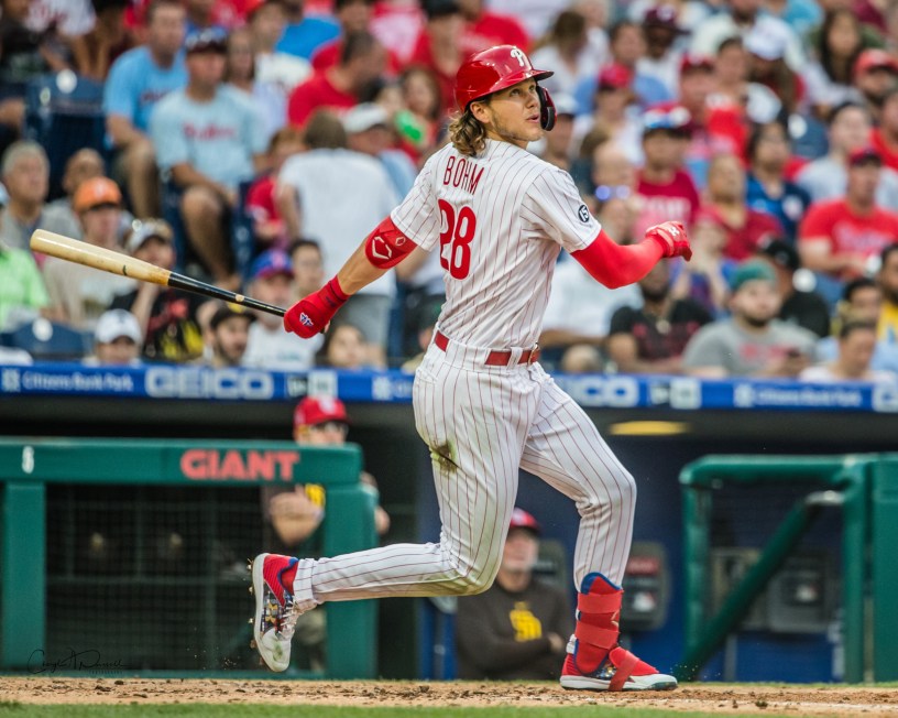 That brings us to the lineup. Schwarber should not be leading off. He’s home run or nothing. It would would be better to bump him down so, if he homers, it would be more than just a solo shot (hopefully). Turner should lead off, then go Bohm, Castellanos, Harper and Stott, J.T. Realmuto, Brandon Marsh and then whomever they have in the lineup that specific game. But Stott and Bohm need to be batting higher.