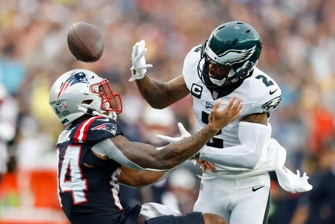 Still, the defense stopped the Patriots when it mattered. Reed Blankenship, who was expected to step up for CJ Gardner-Johnson at safety, led with 12 tackles (nine solo). Justin Evans and Nakobe Dean each had seven tackles, Jordan Davis and Avonte Maddox each had six. Slay had three passes defenses, and Blankenship and Maddox each had two.